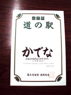 道の駅「かでな」登録証 交付式を実施