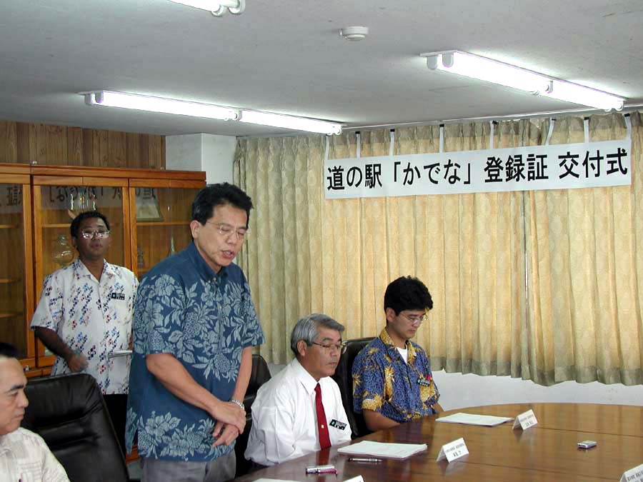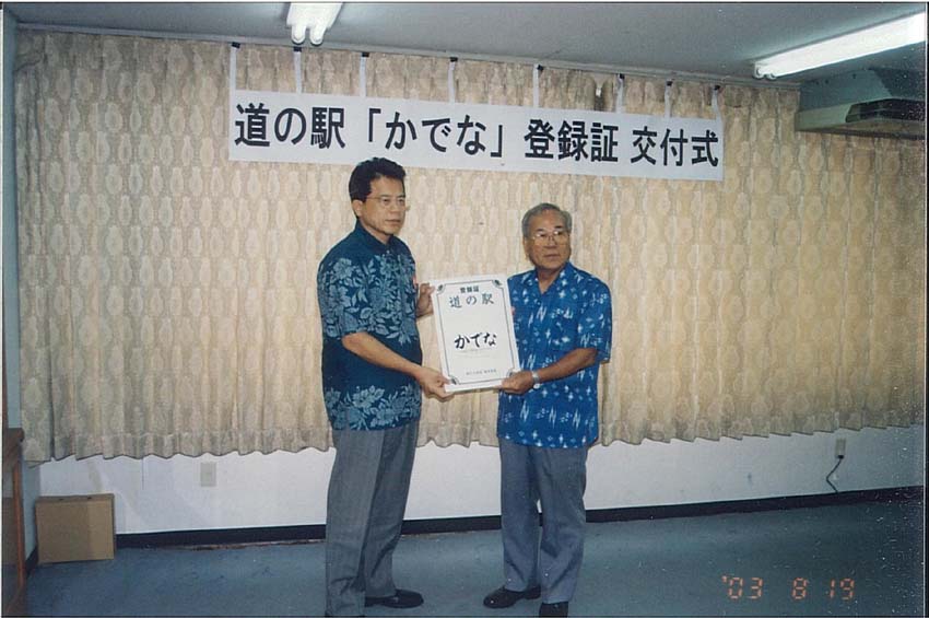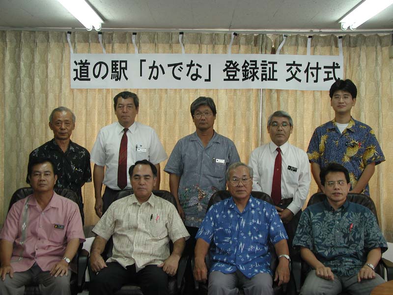平成15年8月8日に国土交通省において、嘉手納町で整備を行いました道の駅「かでな」が新たに登録されたことに伴い、道の駅の登録証の交付式を以下のとおり行いました。