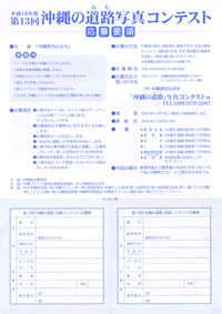 第13回「沖縄の道路」写真コンテストによせられた中の入選作品は、 「平成17年 沖縄の道路カレンダー」に掲載させて頂く予定です。