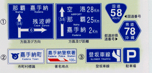 @目的地の方向や距離・路線名・路線番号など経路を案内する標識