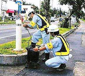情報BOX・・・道路管理の高度化を図るための道路管理用光ファイバーの収容空間として情報ボックスを整備しました。その予備空間に民間事業者の光ファイバーを収容することにより、光ファイバーネットワークの早期実現を支援します。