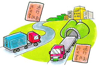 特殊車両通行許可申請書と附属書類が必要になります。