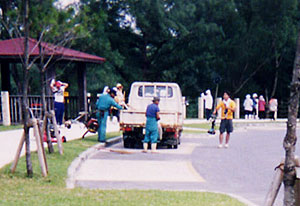 | 実施団体からのメッセージ 私達の活動範囲は、リゾート観光地として国道58号沿いに休憩所があります。県内外から観 光に訪れる方々が利用して、空き缶などいろいろなゴミが投げ捨てられ目立つため「芝生・歩道 ・駐車場は私達がきれいにしています」という看板を設置していて、普段から清掃や草刈等を実 施しています。「美しい恩納村へようこそ」との思いで美化活動に取り組み、サポートしており ます。ゴミ0の安富祖クリーンロードにしたいと思います。 |