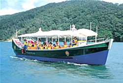 福地ダムの構造で特に珍しいのは、地形的特徴から直接海に放流が行えるということです。大雨が降り貯水池がいっぱいになると、下流の洪水吐から越琉を始め、さらに雨が続き水位が上がってくると、上流洪水吐からダムの水を直接海へ放流することができます。